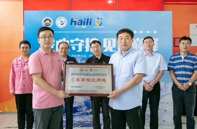 最后,山東省攀巖動員協(xié)會會長安慕雷為海麗雅集團授牌--山東省攀巖比賽指定用繩。