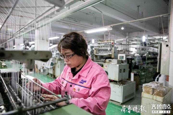 1976年出生的徐美玲,是青島海麗雅集團(tuán)有限公司值車工、輪班長(zhǎng)。所謂值車工,就是要看著機(jī)器正常運(yùn)作,機(jī)器上一股紗織完了,要迅速接好下一股,期間打上又小又牢固的結(jié),確保順利織出繩子來(lái)。