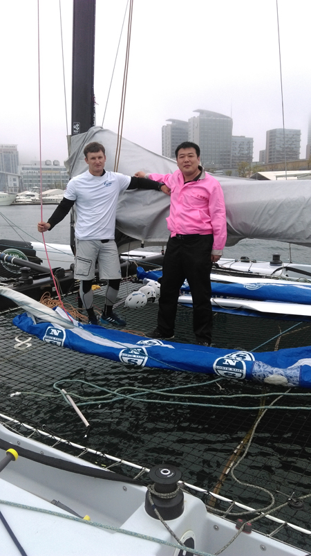 5月3日,“路虎極限帆船賽青島站”比賽在奧帆基地正式開戰(zhàn)。除了觀眾,來自俄羅斯的帆船隊成員也非常激動,比賽之余,他們?yōu)樽约旱姆瑢ひ挼叫膬x的帆船繩纜。