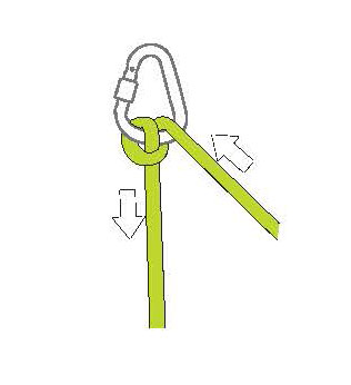 夾在下面較粗的繩子上的結(jié)加載。用于下降或救援使用。如果普魯士結(jié)不成立,增加環(huán)的數(shù)量。