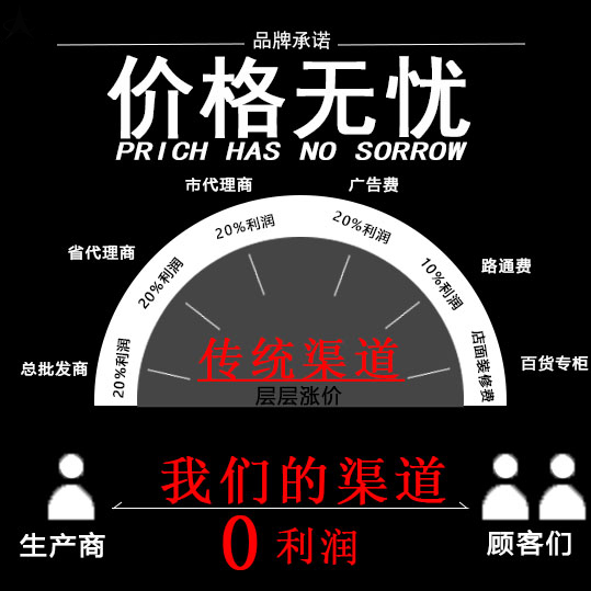 傳統(tǒng)渠道:總批發(fā)商——省級(jí)代理商——市級(jí)代理商——廣告費(fèi)——路通費(fèi)——店面裝修費(fèi)。