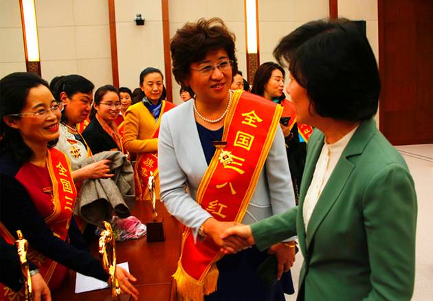 當天,中共中央政治局委員、國務(wù)院副總理劉延?xùn)|,中共中央政治局委員、國家副主席李源潮會見受表彰的先進代表。全國人大常委會副委員長、全國婦聯(lián)主席沈躍躍出席會議并發(fā)表講話。全國婦聯(lián)黨組書記、副主席、書記處第一書記宋秀巖主持大會。