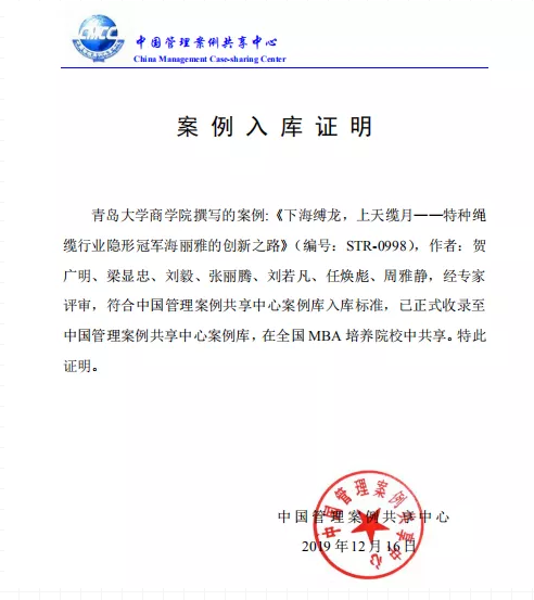 青島海麗雅集團(tuán)堅(jiān)持走“專(zhuān)、精、特、新”的發(fā)展戰(zhàn)略,通過(guò)國(guó)際領(lǐng)先的產(chǎn)品開(kāi)發(fā)水平和技術(shù)創(chuàng)新能力,堅(jiān)持產(chǎn)品品質(zhì)戰(zhàn)略,不斷提高自身核心競(jìng)爭(zhēng)力,成為代表中國(guó)應(yīng)急安全保障類(lèi)產(chǎn)品走向世界的領(lǐng)軍企業(yè)。2018年,海麗雅作為中國(guó)百年企業(yè)創(chuàng)新發(fā)展的典型學(xué)術(shù)研究案例,入選浙江大學(xué)“隱形冠軍”國(guó)際研討會(huì)。2019年,該案例入選“中國(guó)管理案例共享中心案例庫(kù)”,在全國(guó)高校MBA教育課程中共享。