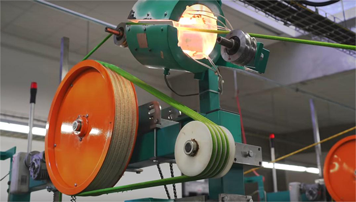 原材料→投料拉絲→拉絲牽伸→捻線機