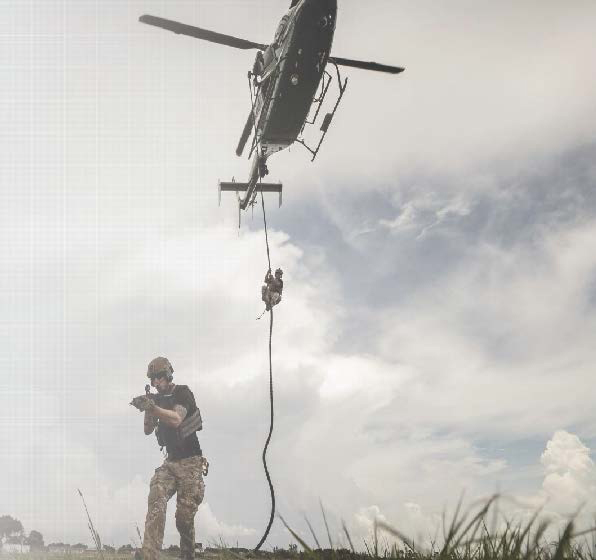 每條直升機(jī)吊繩可攜帶多名裝備齊全的人員,并配有環(huán)和系索系統(tǒng),還可用作普通快繩。具有與標(biāo)準(zhǔn)快繩相同的終端選項(xiàng)。